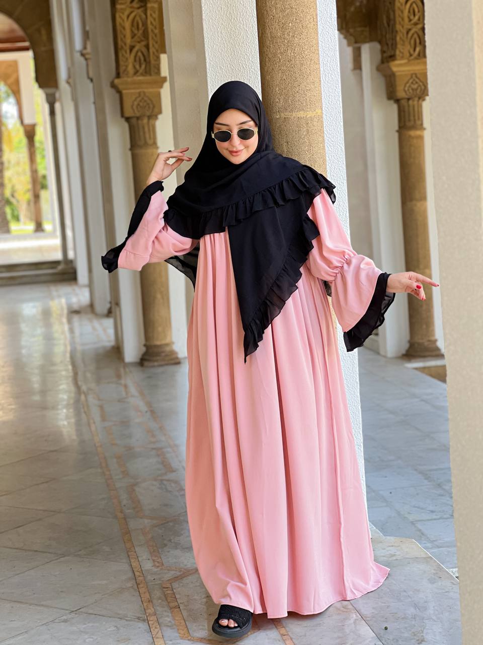 🕌 عباية راقية قطعتين كريب روز –Ghozbb